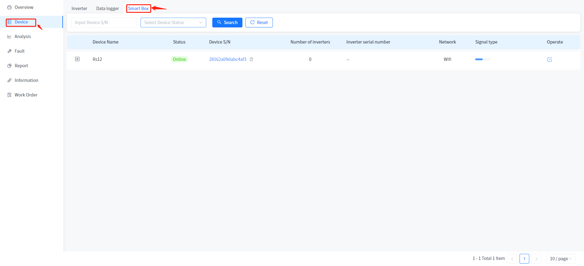 ② Click on the Smart Box tab at the top to enter the Smart Box device list page.
