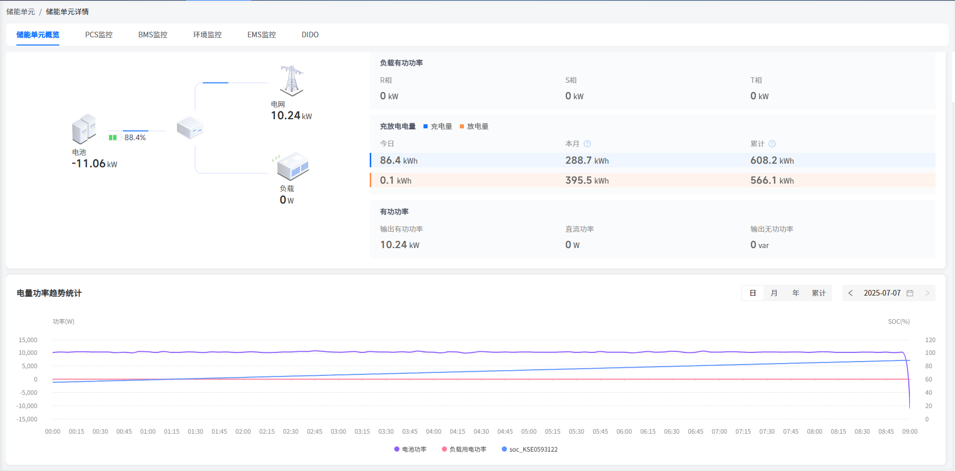 系统在工商储类型电站中增加了储能单元/调压单元的机柜显示处。您可以在这里查看到您的机柜基本信息。