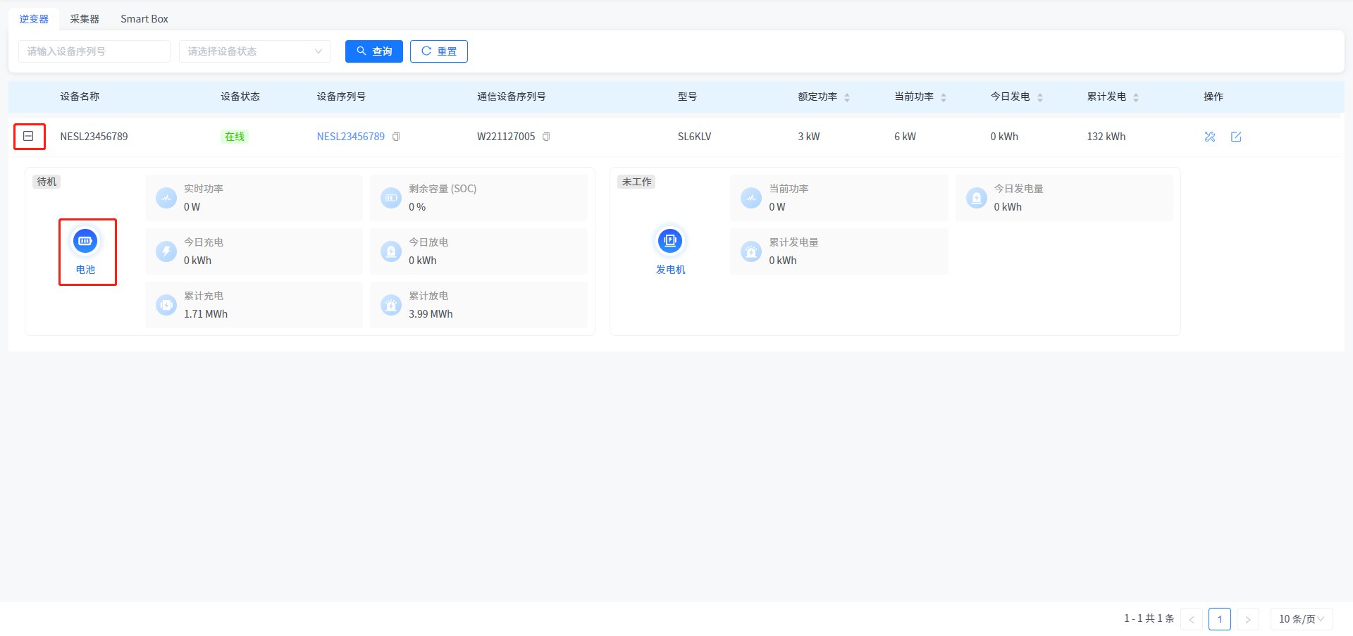 Smart M支持您在储能设备的逆变器-电池处查看到您电站下的电池实时信息。