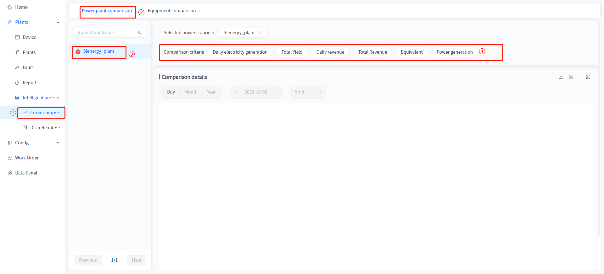 ① Open the Plant Intelligent Analysis Curve Analysis Comparison Plant Comparison module