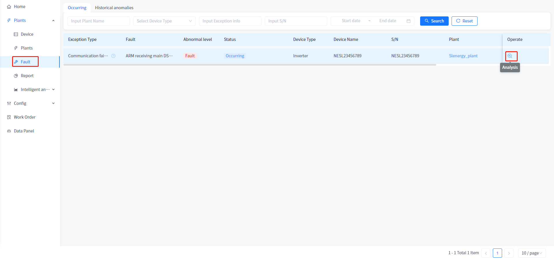 ③ Click the [Fault Analysis] button in the fault data operation column.