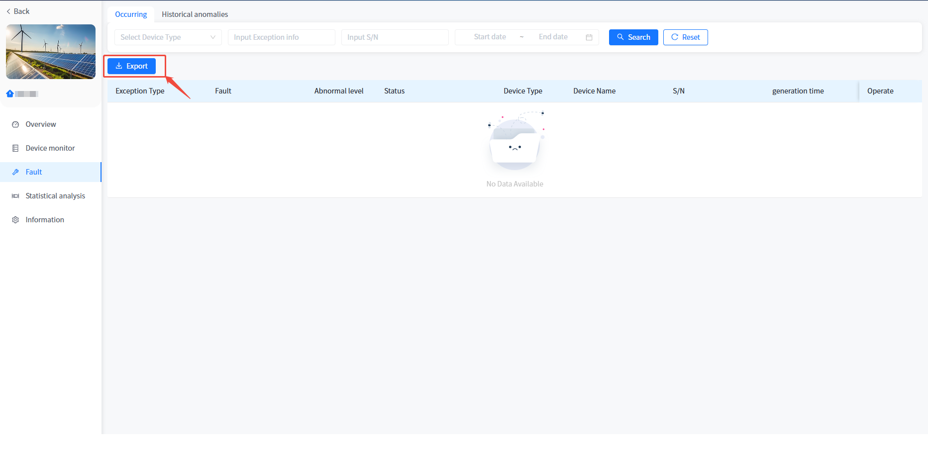 ③ Click on the [Fault Information] on the left to enter the power station fault list.