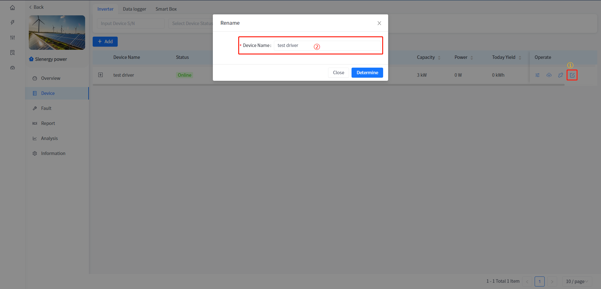 ④ In the pop-up Renaming device name box, enter a new device name and click the Confirm button.