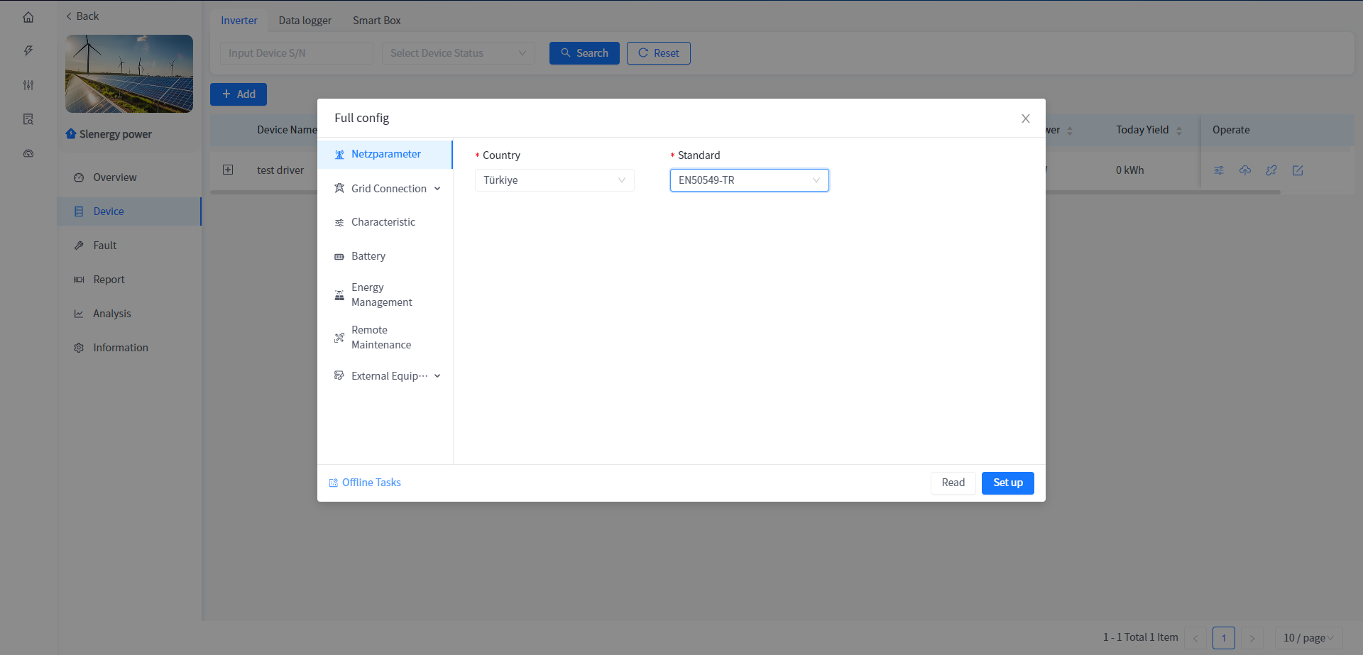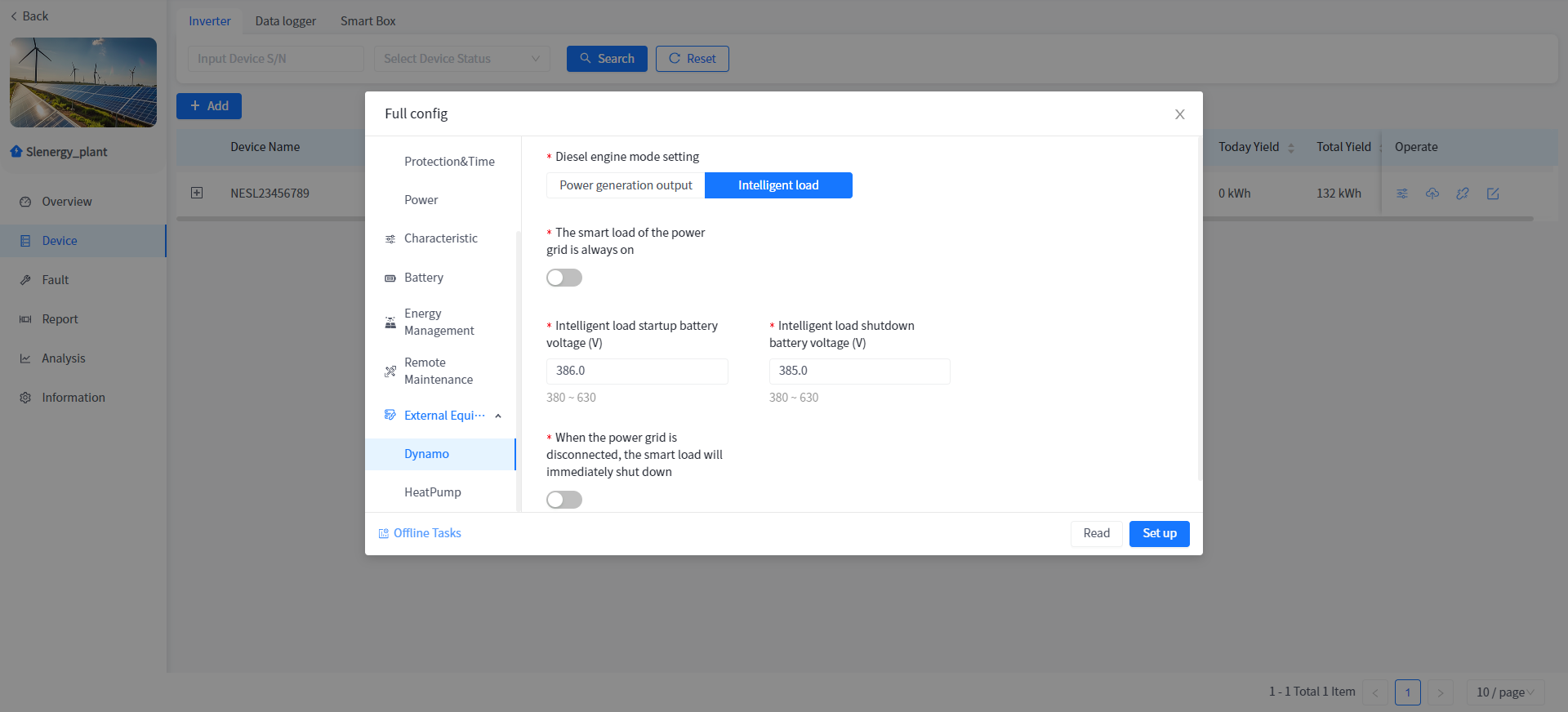This system supports the operation of reading or setting the working parameters of the Device in the power plant Device details.