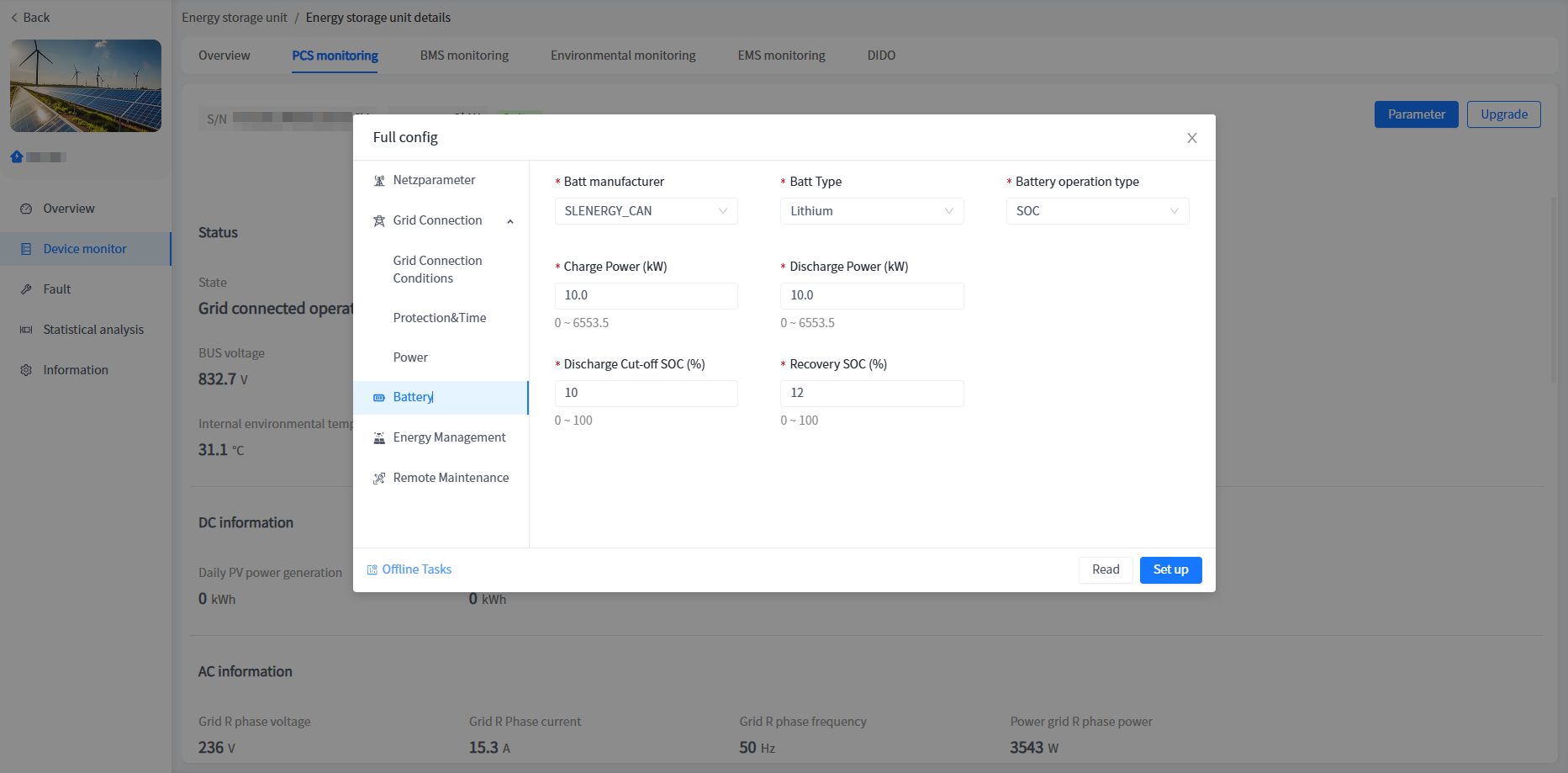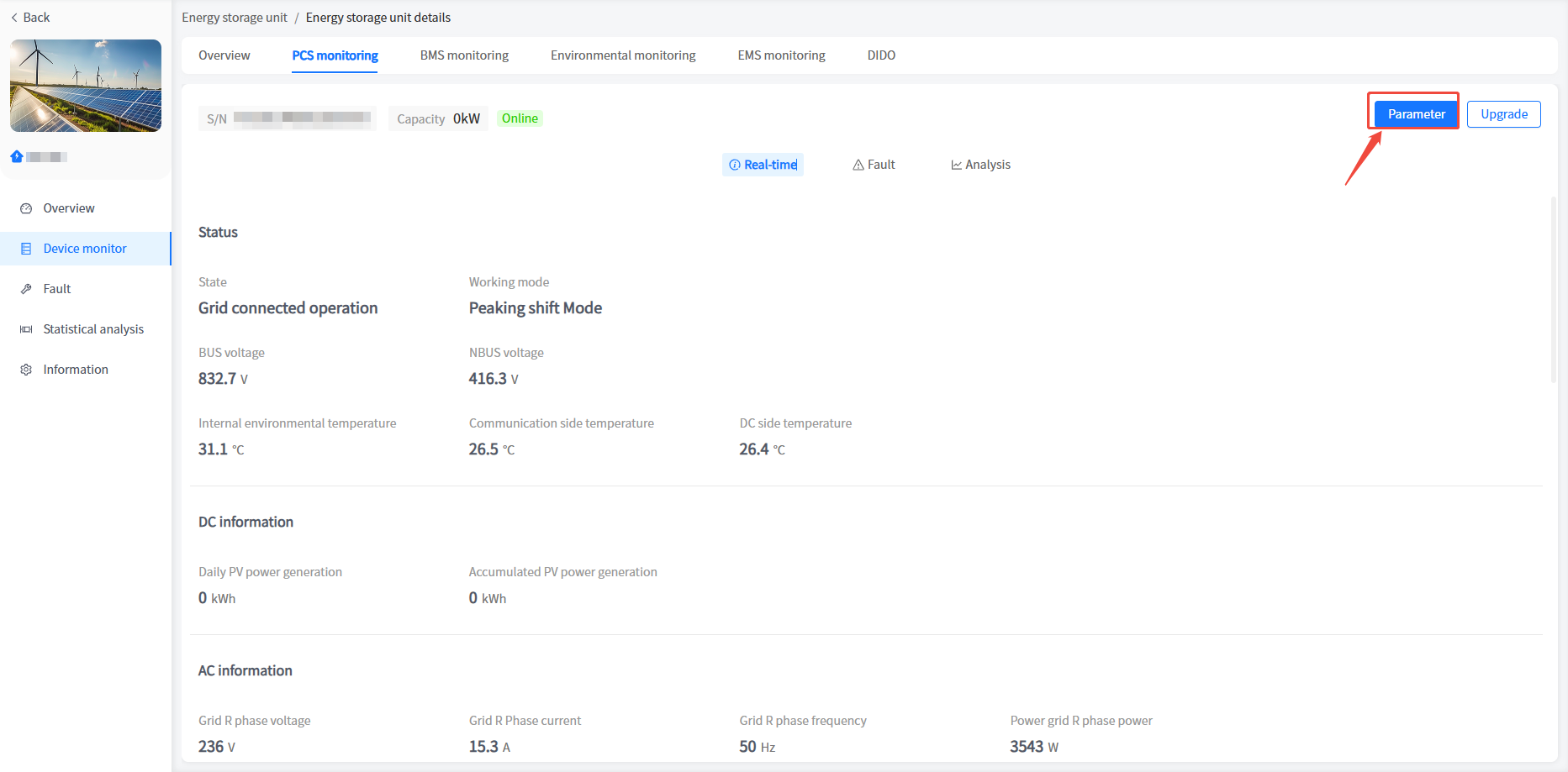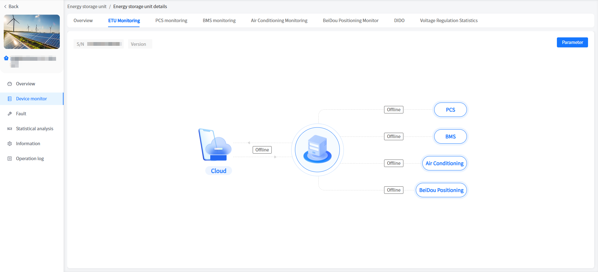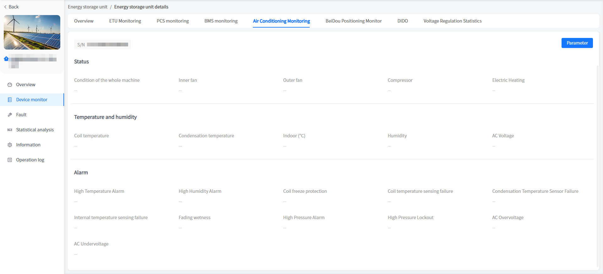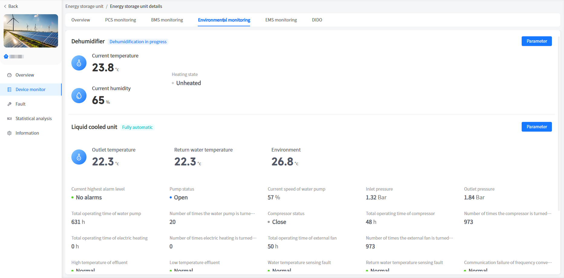 The system has added a cabinet display for energy storage units/voltage regulation units in industrial and commercial storage type power stations. You can view the basic information of your cabinet here.