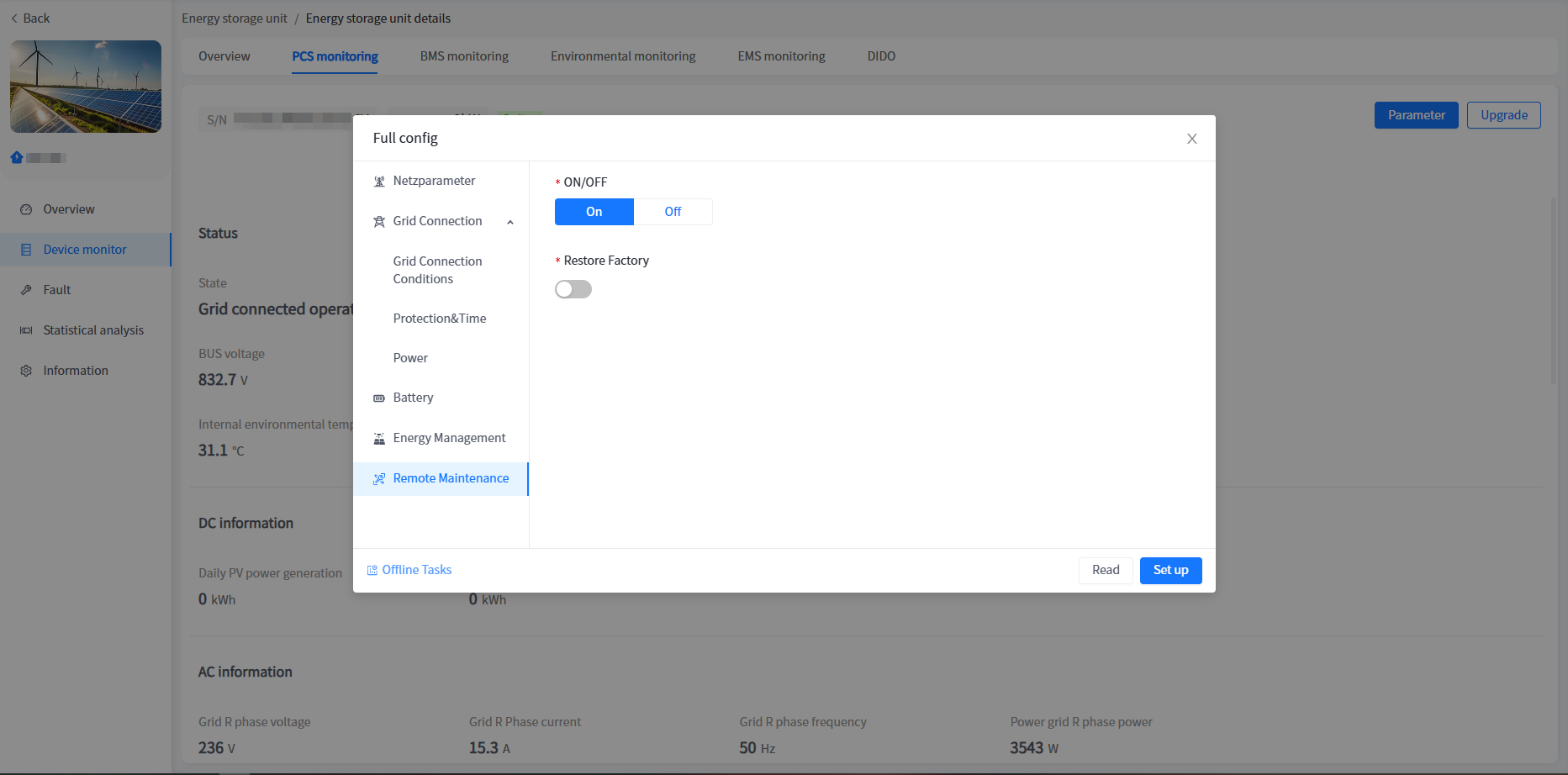 Due to the separate display of PCS in the system, when your cabinet is connected to the network, you need to associate PCS with the power station in the device association. The specific operation steps are consistent with the association steps of the cabinet.