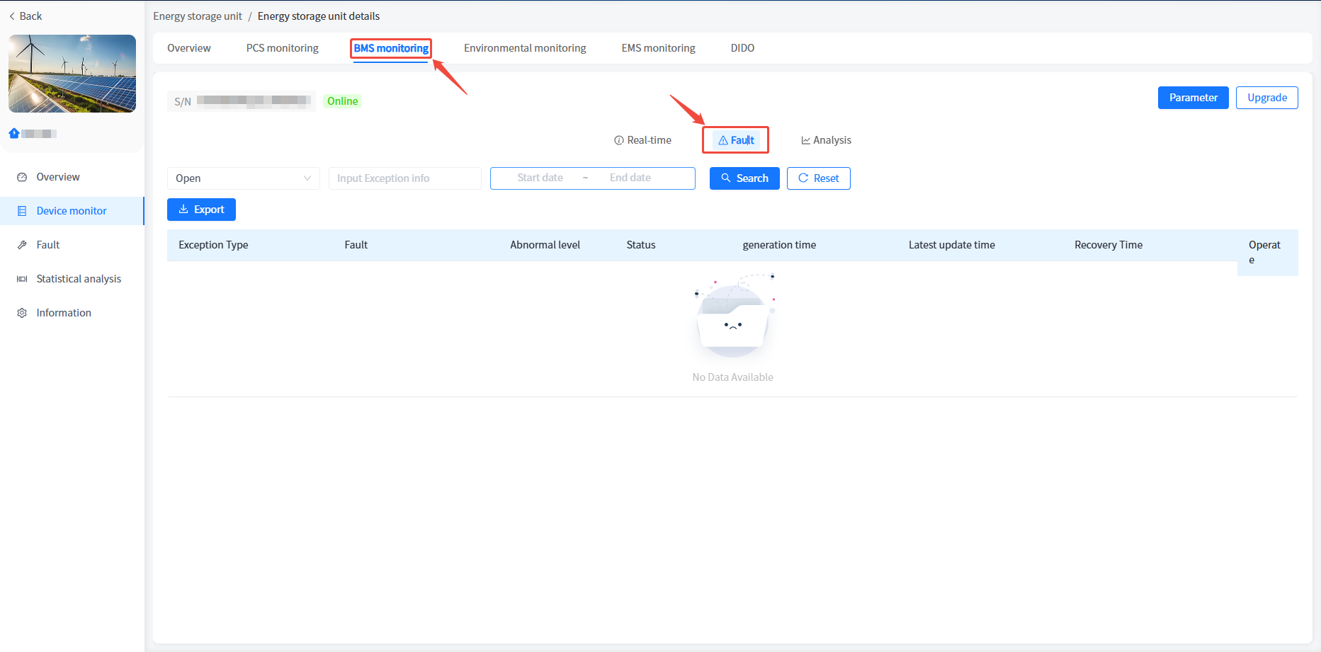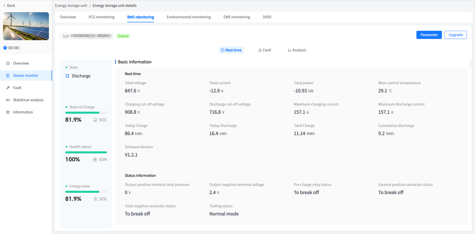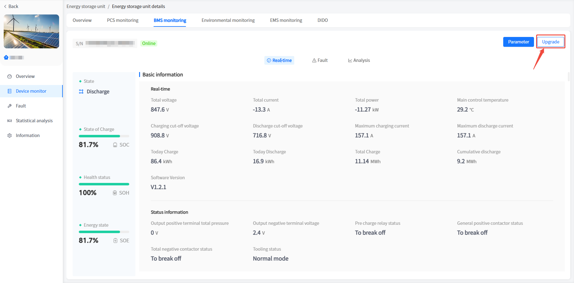 ③ Click on Energy Storage Unit Data - BMS Monitoring