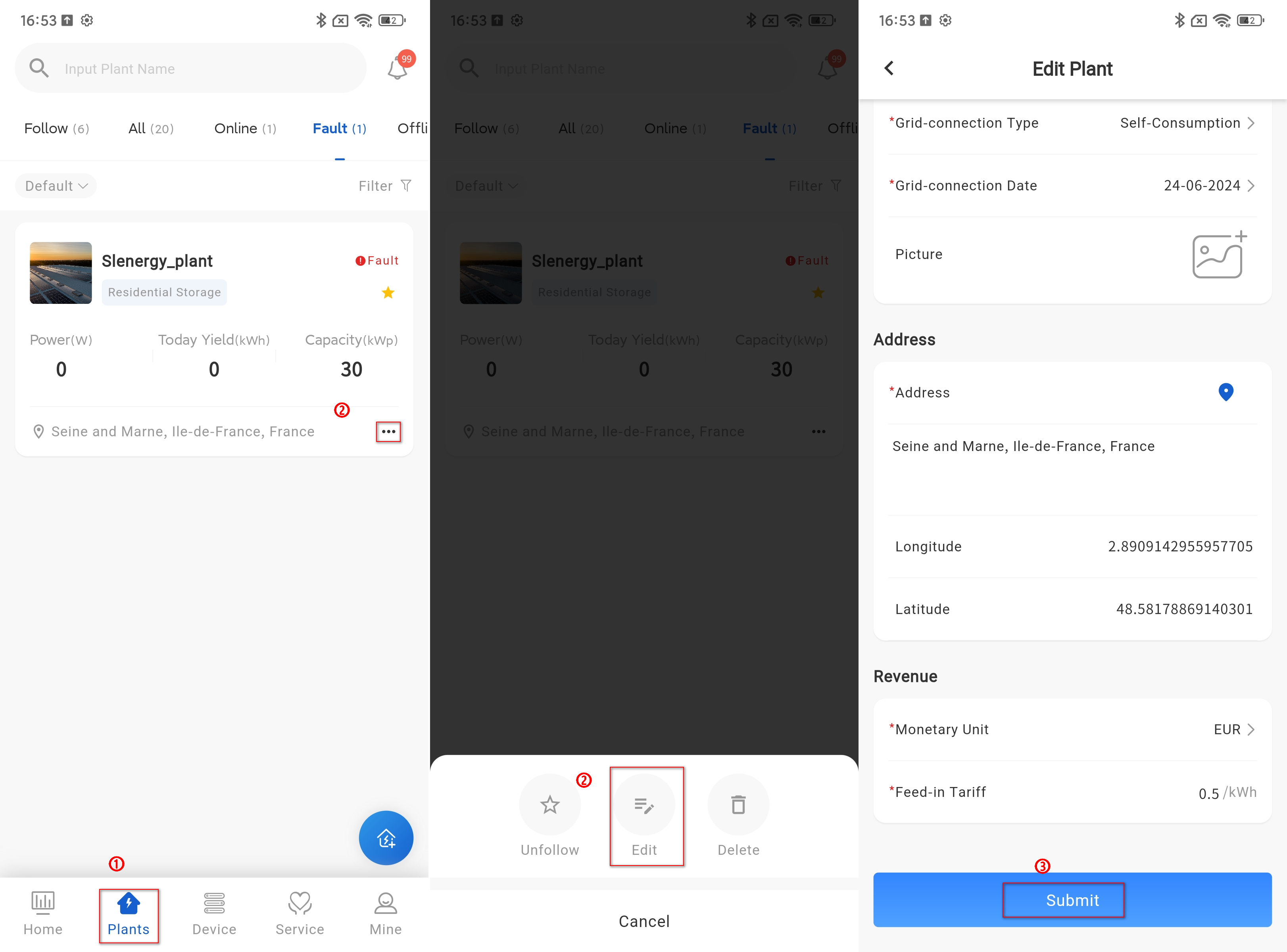 ③ Modify the fields that you want to change. The entered plant information must comply with the verification rules during new creation.