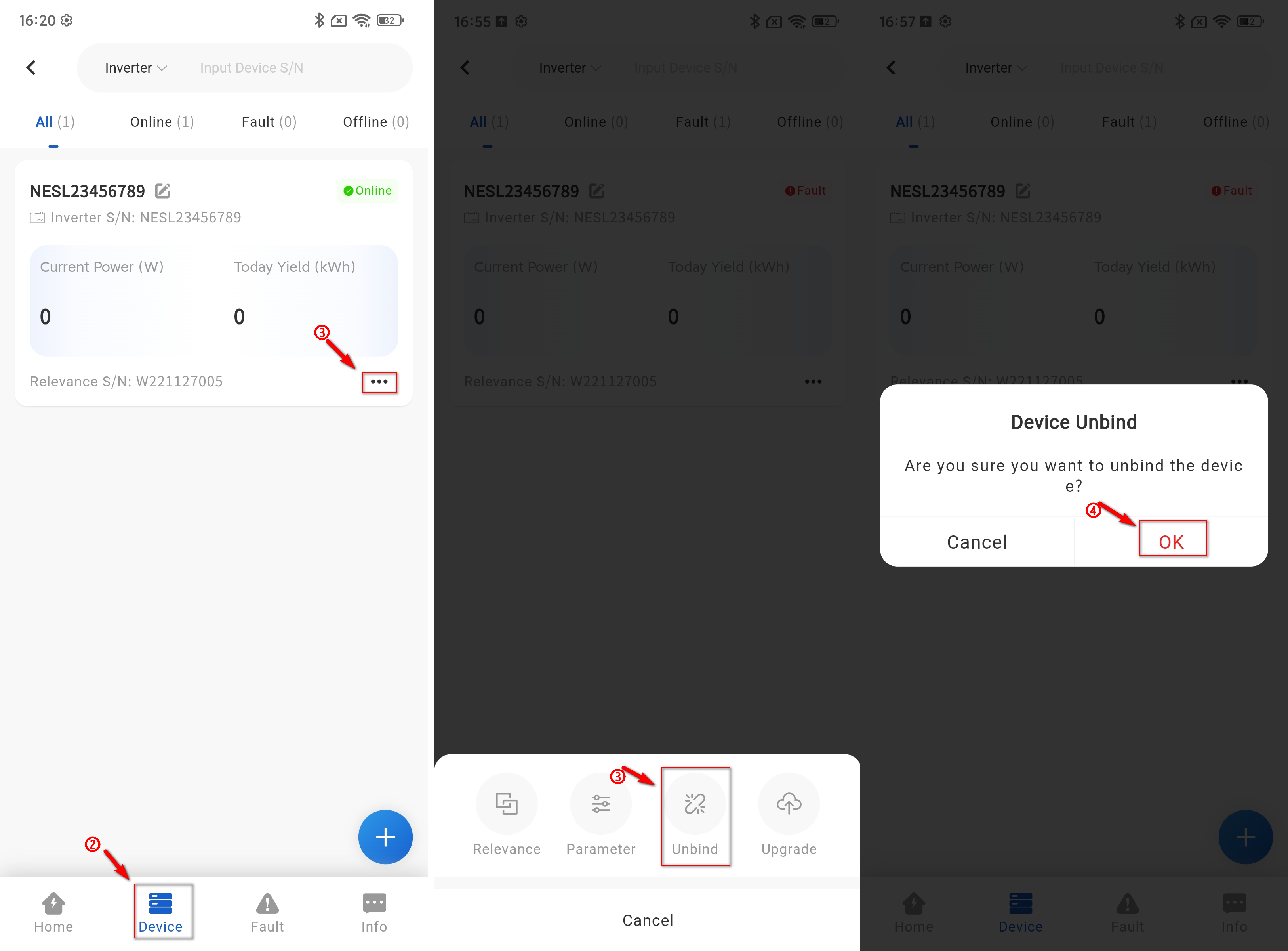 ③ Click the [...] - [Unbind] button on the right side of the device data.