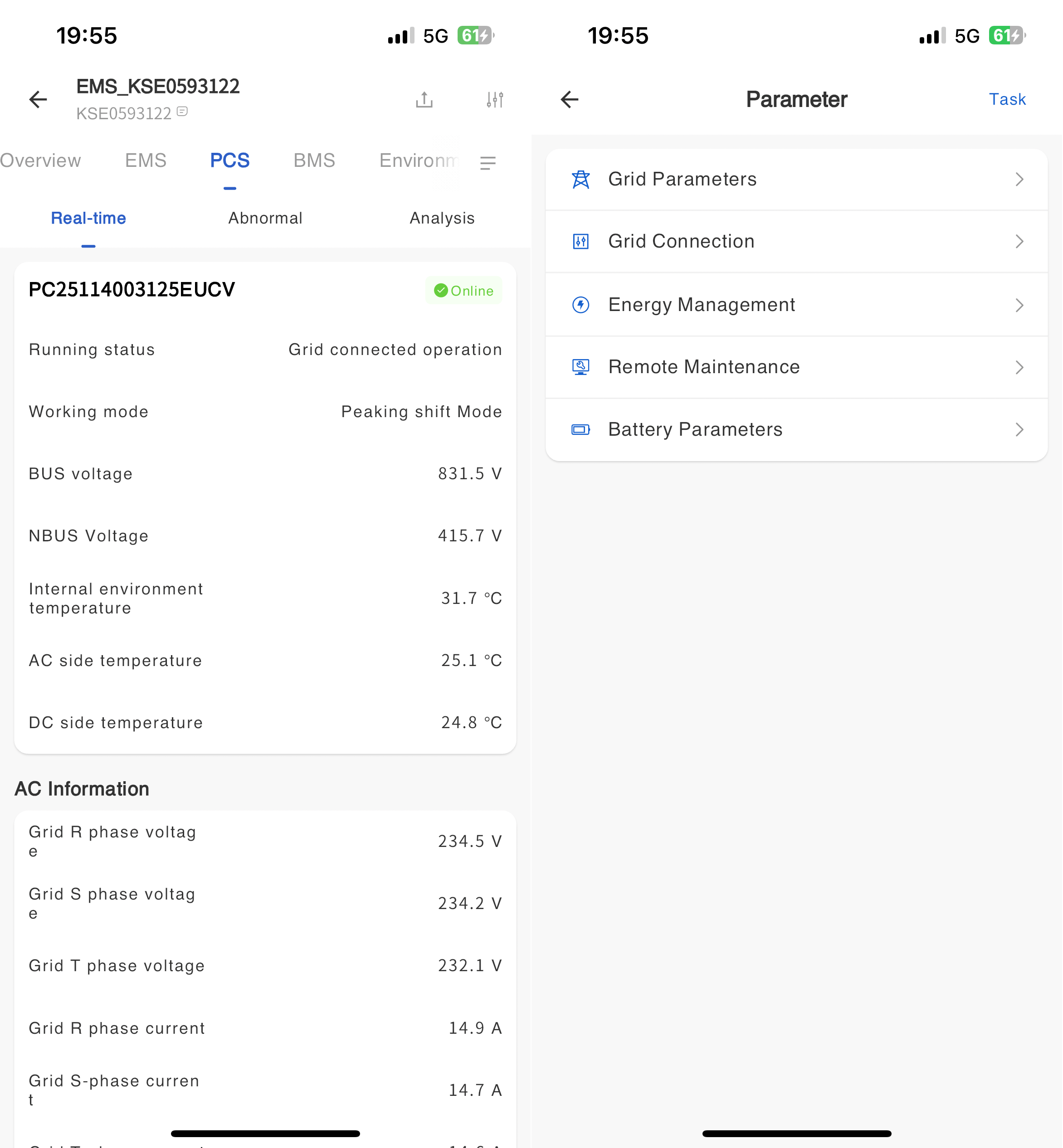 The APP supports you to remotely set the parameters of PCS.