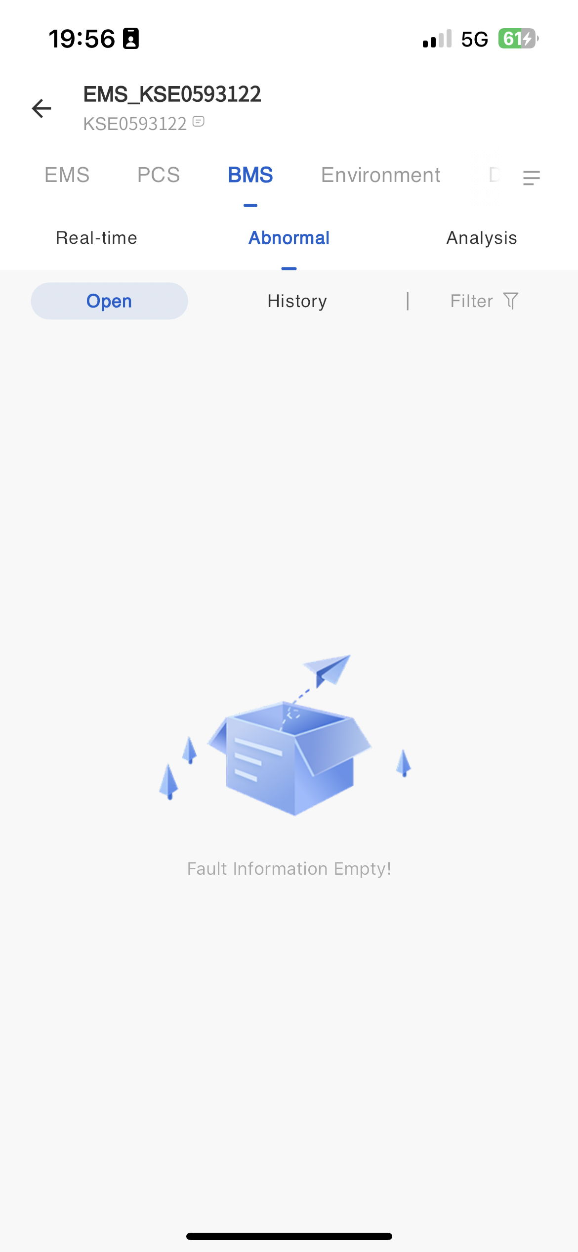 In the fault information page, display all fault data of the BMS equipment. Move thebutton next to the mouse fault type to view the troubleshooting plan for the fault alarm.