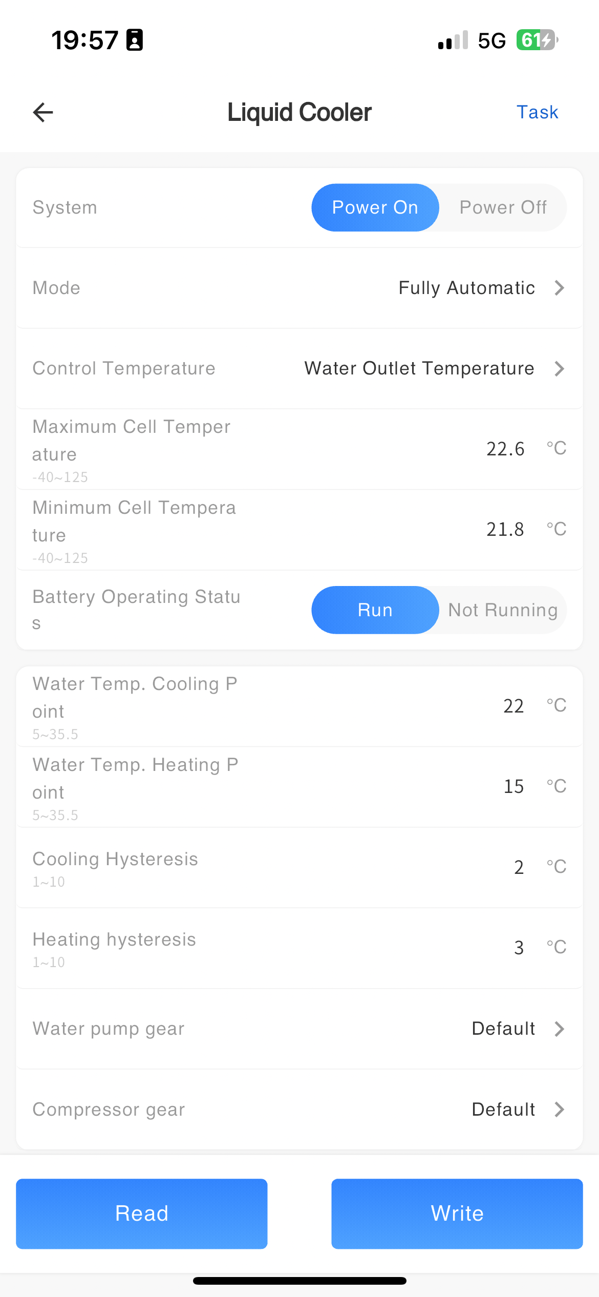 Parameter configuration of liquid cooler