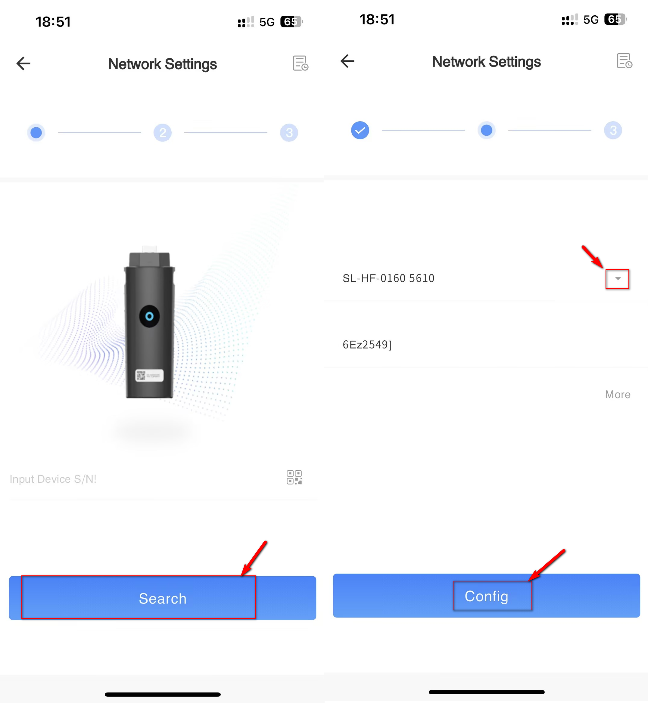 ⑤ Click on the [Search Devices] button at the bottom, find and select the device you want to network with.