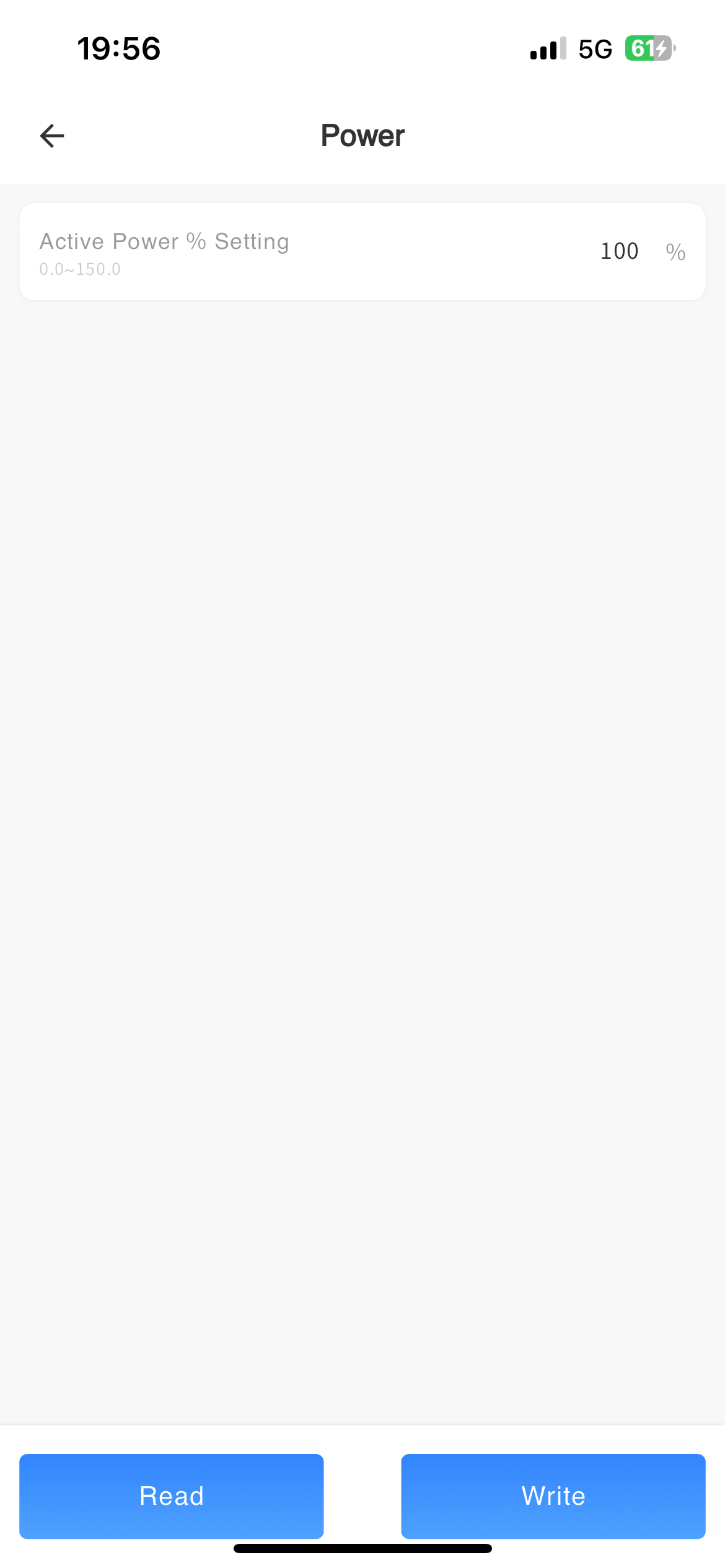 Active power % (%) | After setting the value, the maximum power of the machine becomes the maximum power multiplied by the set percentage | Minimum0.1% |