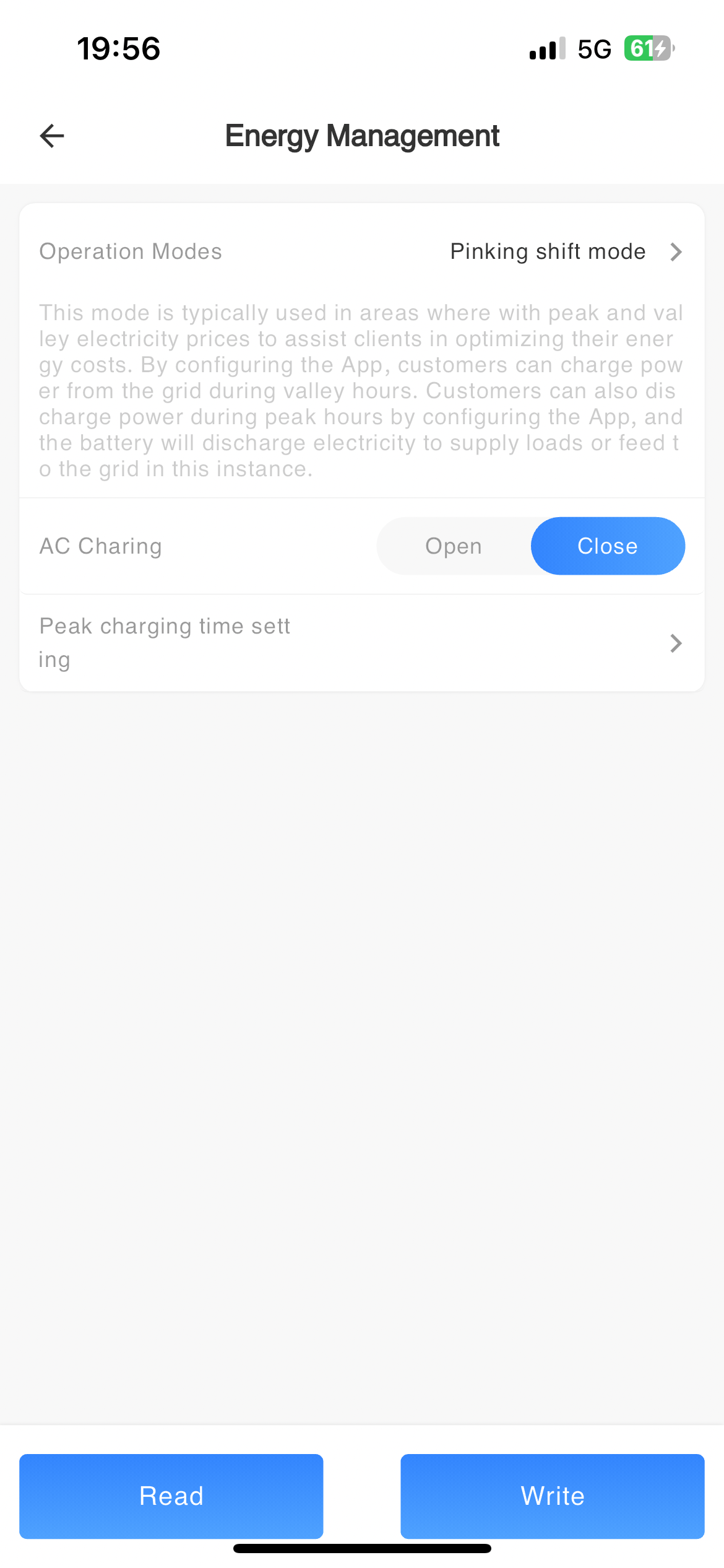 Reactive regulation method | The specific standards supported by the device under the national/regional power grid should be selected based on the current grid standards connected to the device. | Disable Power factor setting enabled Reactive power percentage setting enabled Q (U) curve setting enabled Q (P) curve setting enabled |