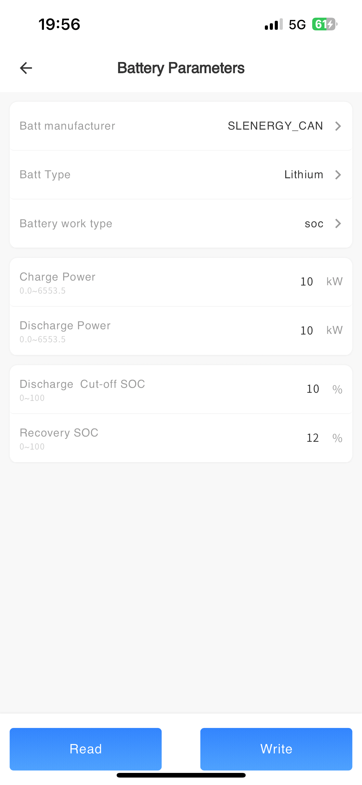 Reconnect and increase the online slope(X%Pn/min) | The rate at which the machine tracks to the maximum power point of MPPT after reconnecting to the grid (setting regulations will automatically modify to the corresponding regulatory setting value, it is not recommended for users to modify) | 1-65535,Minimum 1X%Pn/min |