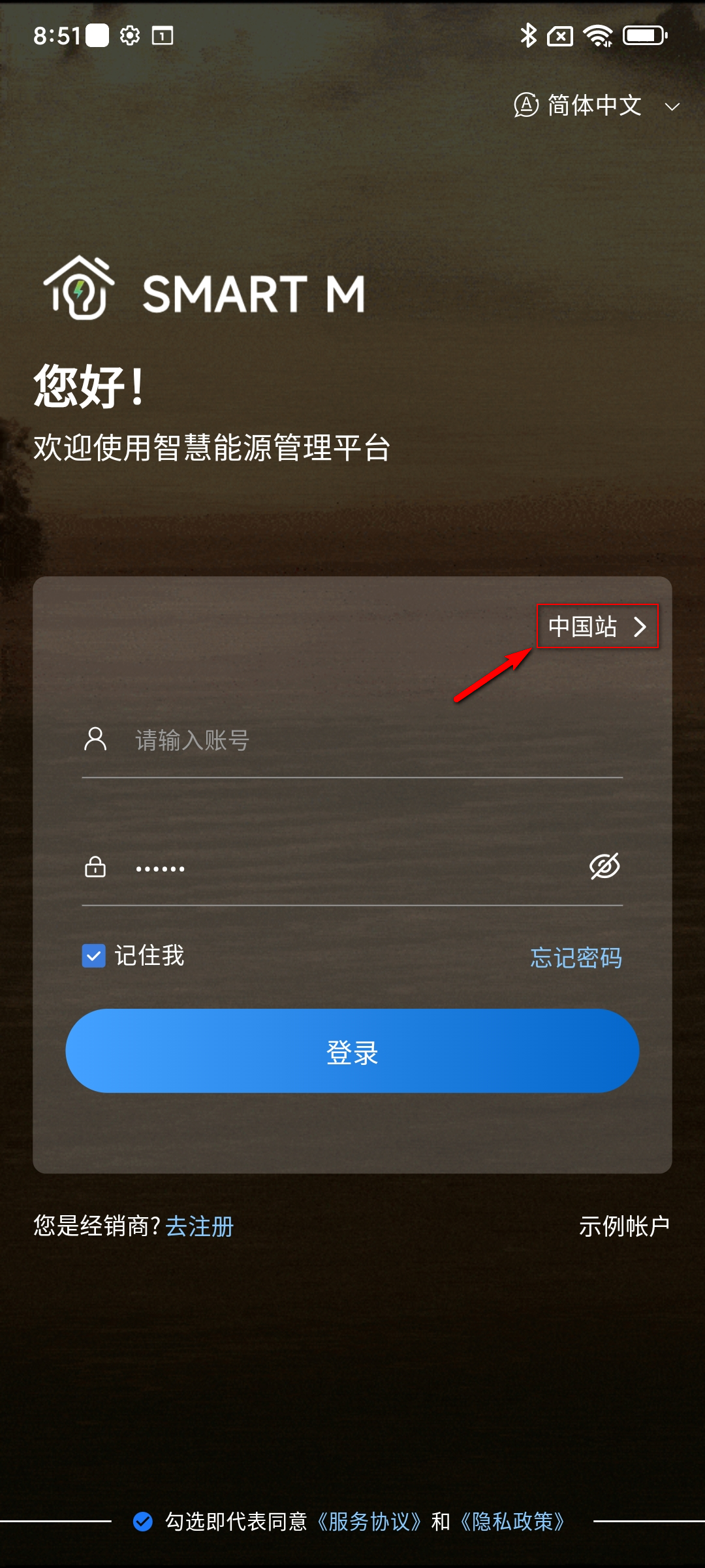 Smart M是多个站点部署,为了方便您使用,我们使用的是同一个APP来访问,如果您访问不同站点,请根据下列步骤进行操作: