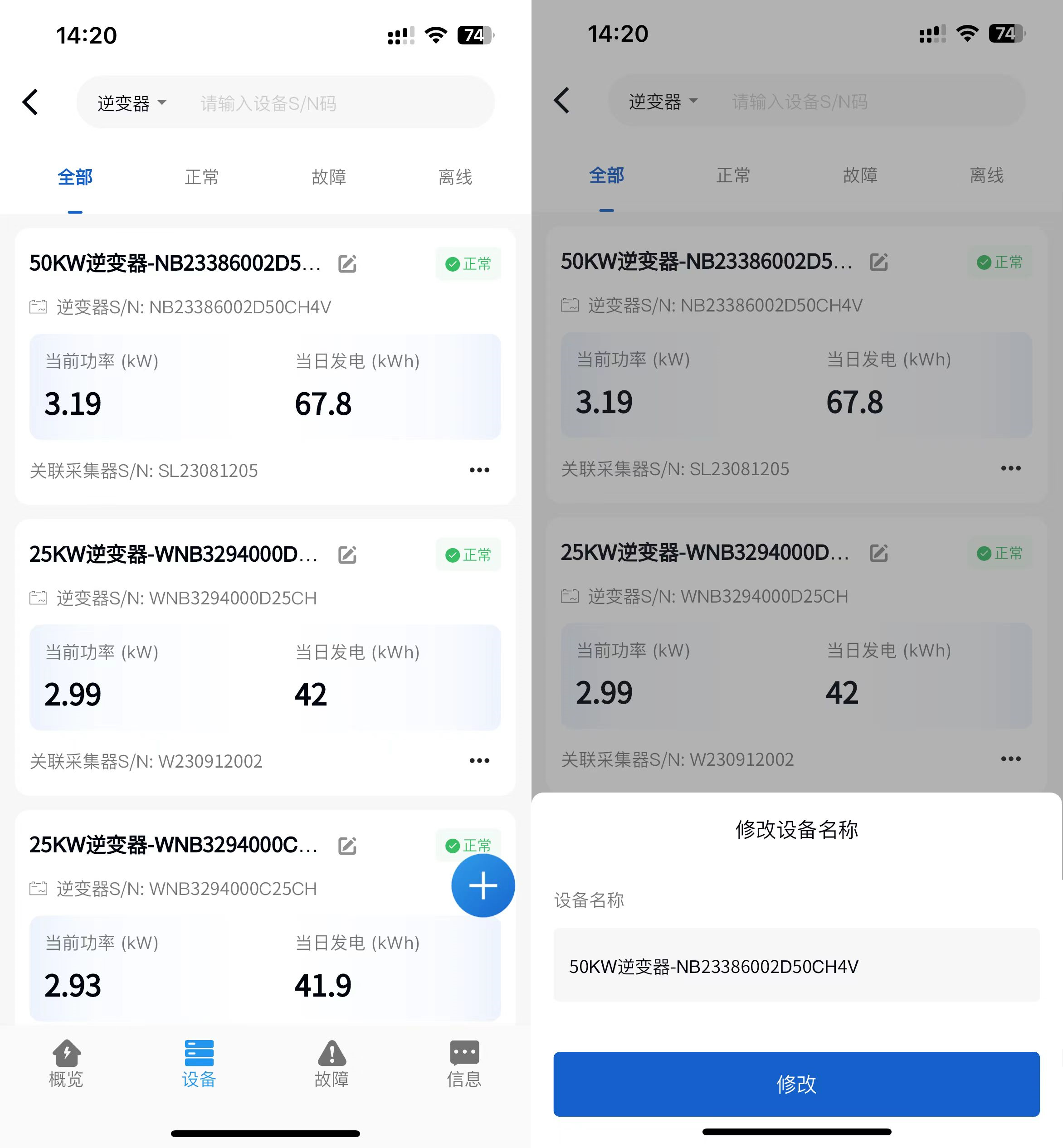 ④ 在弹窗中输入想要修改的设备名称,然后点击[修改]按钮提交修改。