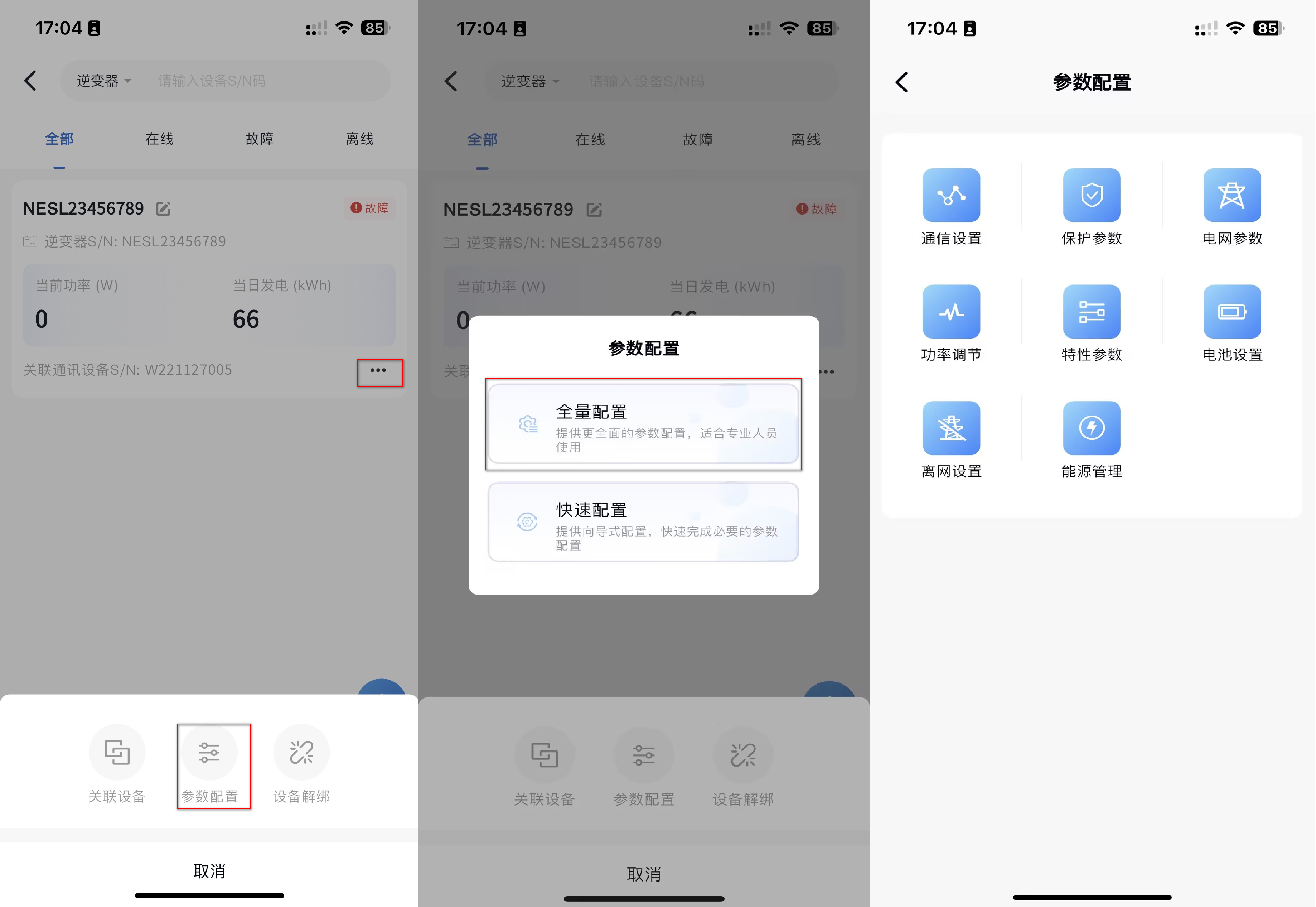 ③ 找到您电站下已经离线的设备,点击右侧[...]-[配置]按钮。