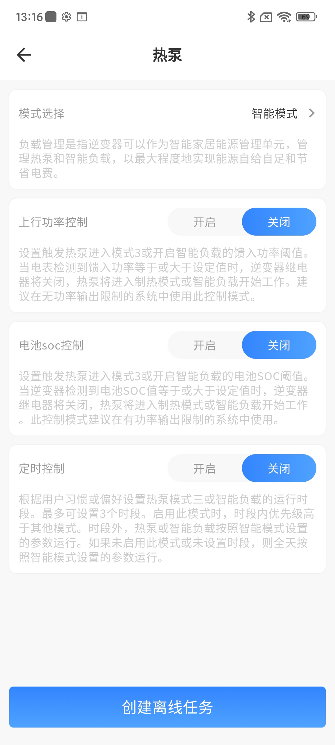 上行功率控制 | 使能开启后,其他已开启的使能自动关闭,热泵根据设置的参数进行工作 | 开启/关闭 |