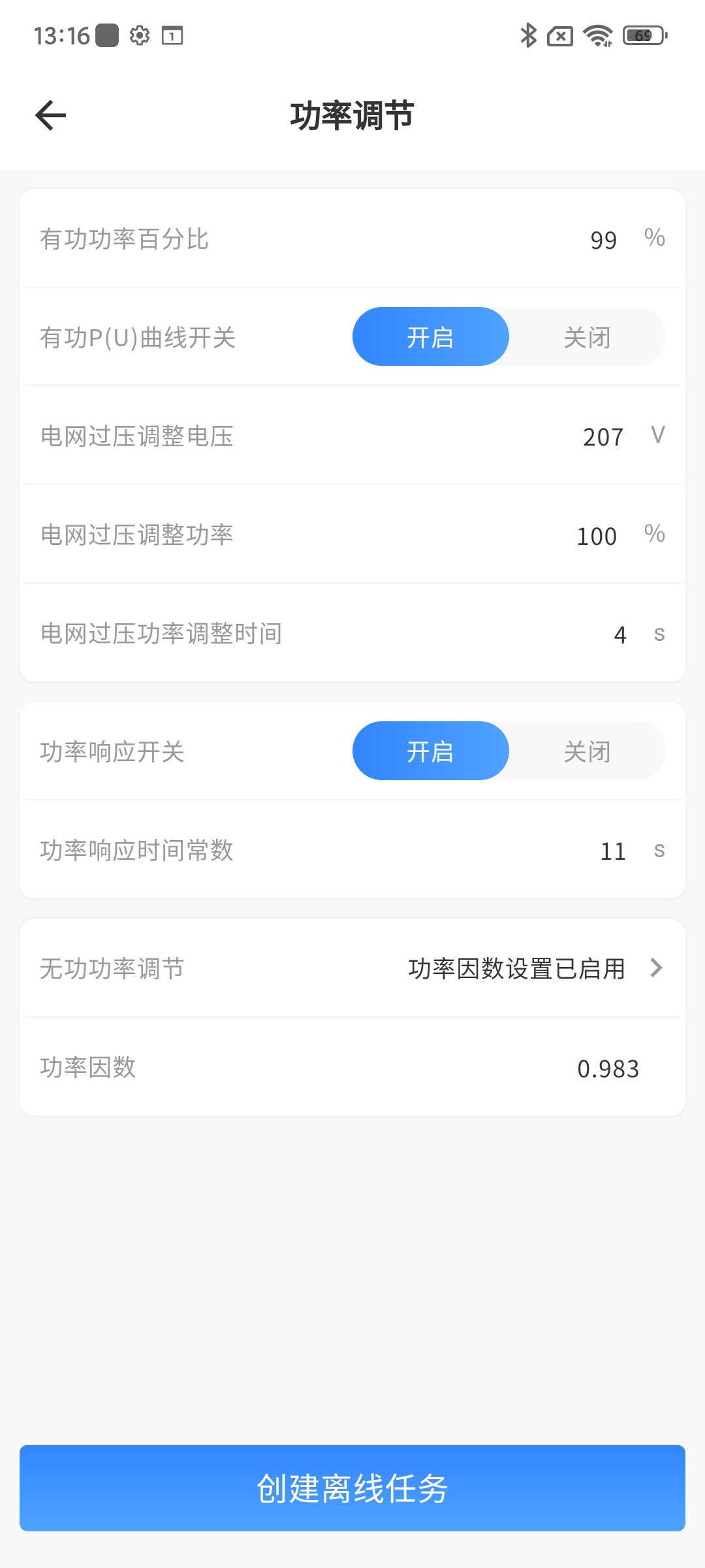 电网过压调整功率 | 设置值后,电网过压后设备调整到该值功率 | 最低0.1% |