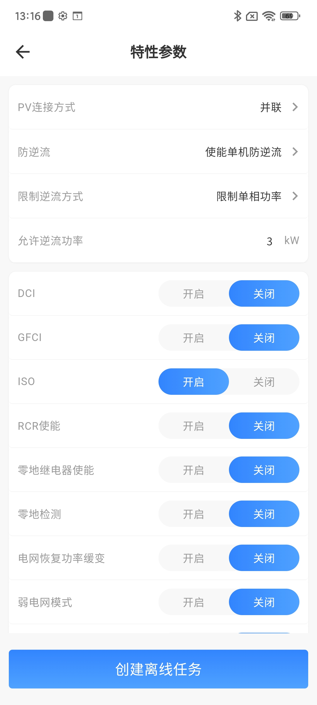 ISO | 即绝缘阻抗检测,使能后并网检测时机器会进行检测 | 开启/关闭 |