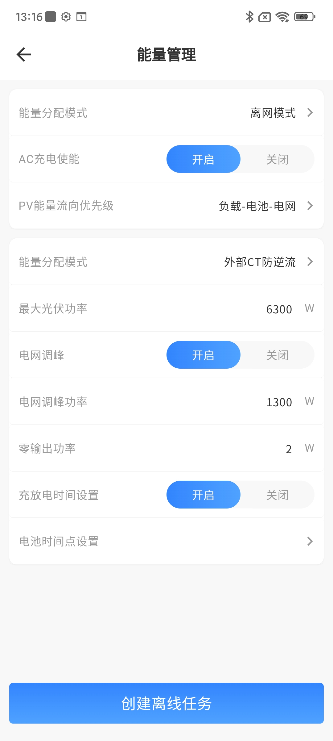 离网运行开关 | 默认关闭,开启后,机器可在设置的离网时间段下back up进行电压输出 | 开启/关闭 |
