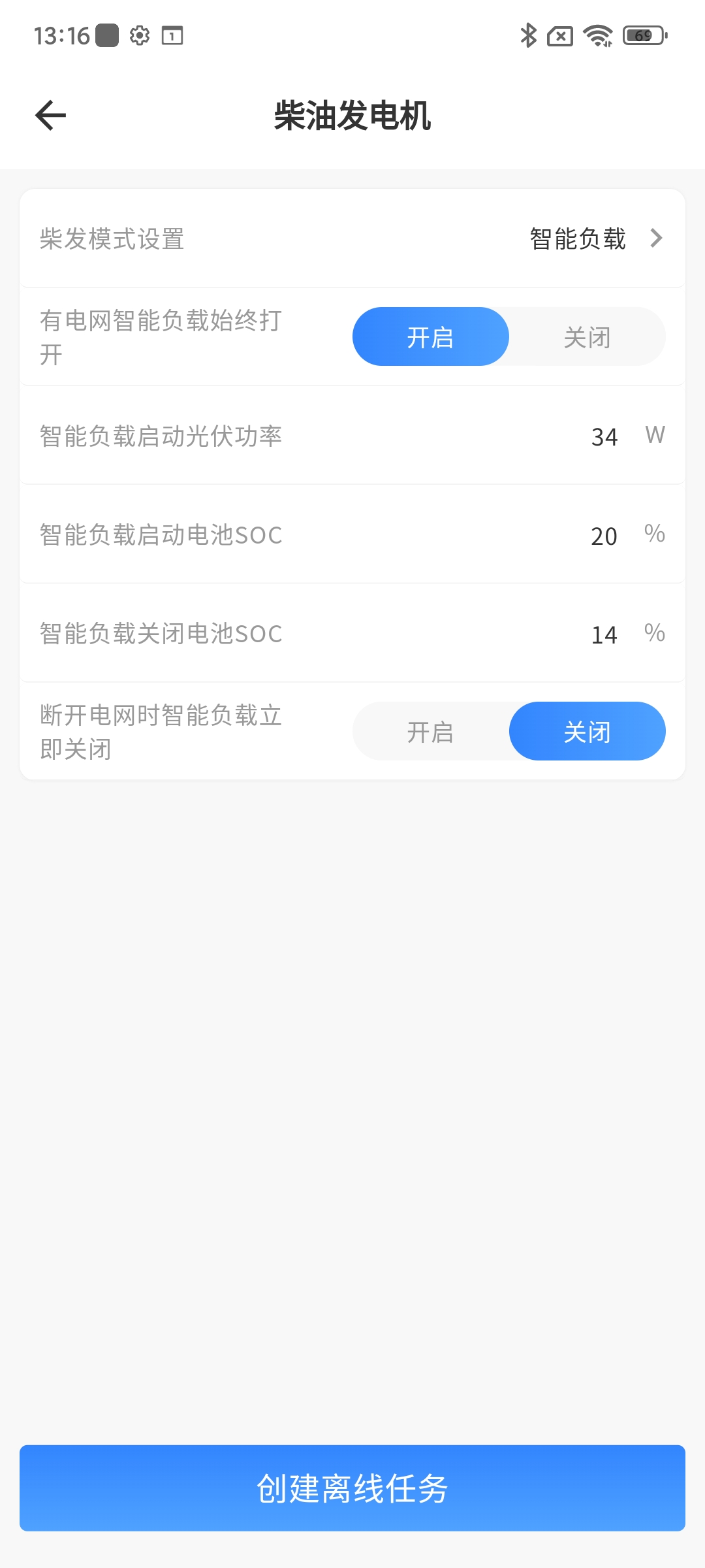 断开电网时智能负载立即关闭 | 电网侧没有电时,立即关闭智能负载 | 开启/关闭 |