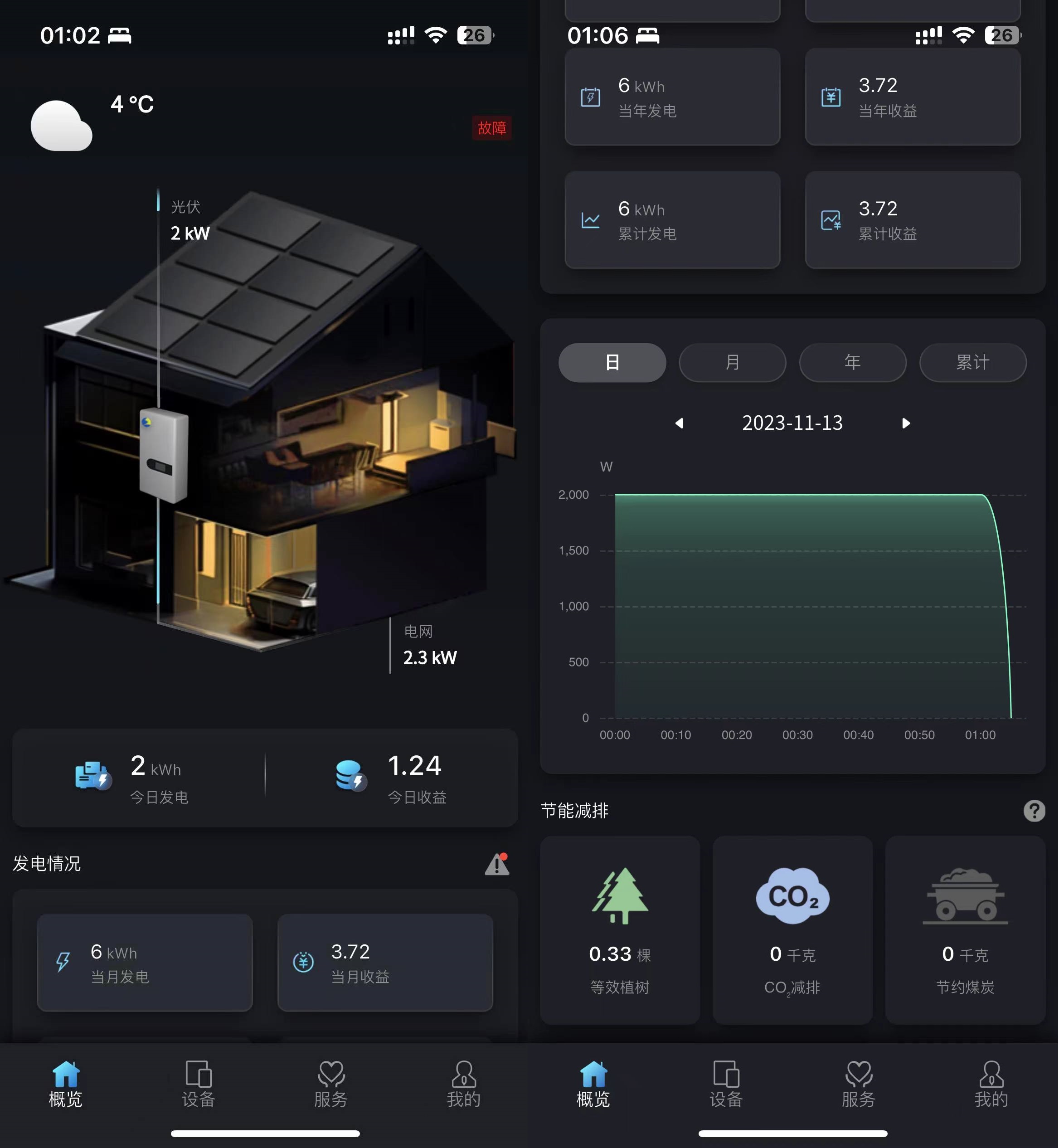 [节约电费]在首页展示您当前电站使用清洁能源所节约的电费情况。
